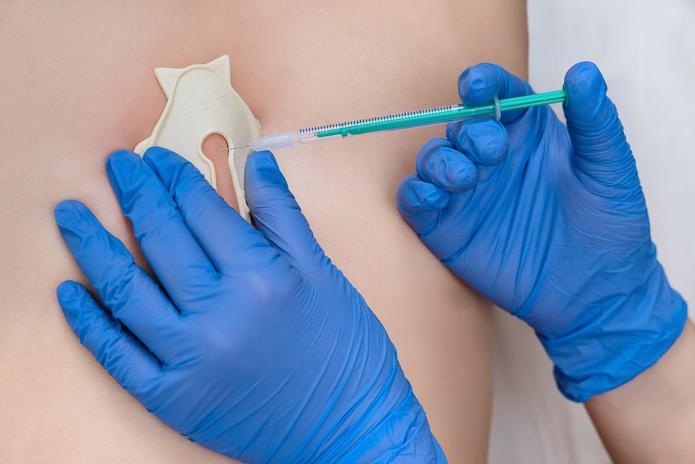 • натяжение кожи при формировании складки способствует более быстрому и легкому введению иглы