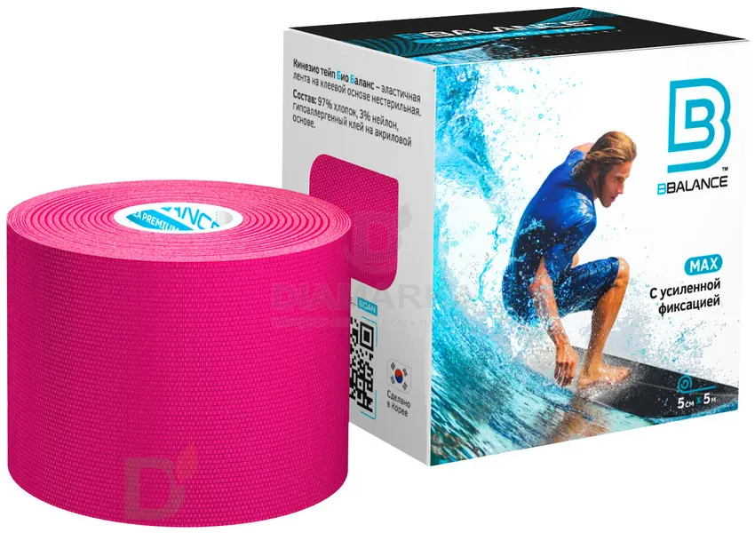 <h2>Эластичный, как кожа</h2> Тейп (он же кинезиотейп) - это эластичная хлопковая лента с клеевой основой. Эластичность тейпов BB схожа с эластичностью кожи: лента никак не ощущается на теле и не причиняет дискомфорт при движении!<br> <br> <h3>Где и для чего используются тейпы?</h3> <ul> <li>для снятия боли в мышцах и суставах</li> <li>для предотвращения травм во время занятий спортом</li> <li>тейпирование помогает разгрузить мышцы и правильно перераспределить нагрузку (например, во время беременности)</li> <li>для фиксации диа-гаджетов, канюль, медицинских повязок</li> <li>в качестве замены обычному пластырю</li> <li>при ушибах, вывихах, растяжениях, отеках</li> <li>при ДЦП и нарушениях в работе опорно-двигательного аппарата</li> <li>в спортивной медицине, травматологии, мануальной терапии, косметологии</li> <li>при остеоходрозе, артрите и проч...</li> </ul> <h3>Преимущества тейпов BB:</h3> <ul> <li>коэффициент эластичности 180% (растягивается практически вдвое!)</li> <li>гипоаллергенный состав</li> <li>тейп не препятствует дыханию кожи</li> <li>хлопковая лента достаточно быстро высыхает при намокании</li> <li>не вызывает раздражений</li> <li>в составе нет латекса (латекс - сильный аллерген)</li> <li>не стягивает кожу и не сковывает движений</li> <li>один тейп выдерживает в среднем 7 дней непрерывной носки</li> </ul> Тейпы с пометкой "MAX" имеют усиленную фиксацию и делают возможным более длительное ношение ленты. Им не страшна вода и большая амплитуда движений.<br> Тейпы серии "KIDS" предназначены для детей. Яркий уникальный дизайн позволяет проводить процедуру тейпирования без стресса даже у самых маленьких пациентов!<br> Тейпы серии "LITE" предназначены специально для чувствительной кожи.<br> <h4>Состав тейпа:</h4> 97% - хлопок<br> 3% - нейлон<br> гипоаллергенный акриловый клей<br> <h4>Формат ленты:</h4> длина - 5 метров<br> ширина - 5 см