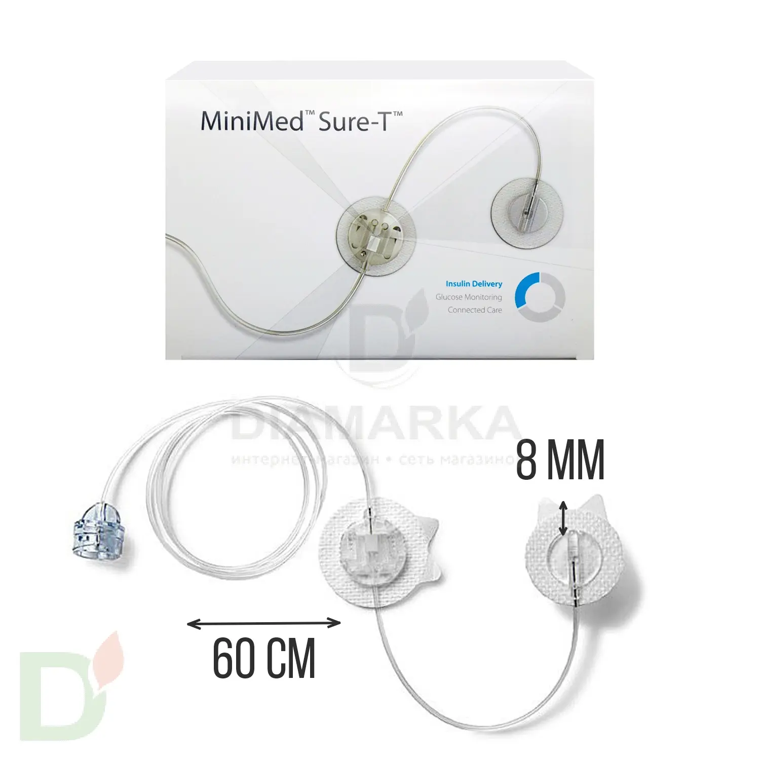 Устройство для инфузии Шуа-Ти 8/60 (ММТ-874) представляет собой набор из стальной канюли и двух тонких трубочек, которые соединяются с инсулиновой помпой компании Медтроник.  Длина иглы в системе ММТ-874 составляет 8 мм, длина трубочки – 60 см.