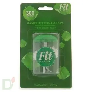 <p> ФитПарад №20, 300 таблеток с дозатором - инновационный сахарозаменитель. Обладает великолепным вкусом и улучшенными потребительскими свойствами благодаря сбалансированному составу тщательно подобранных компонентов. ФитПарад №20 отлично подойдёт для замены сахара людям с диабетом, а так же тем, кто заботится о своём весе. </p> <h1>1 таблетка "ФитПарад" №20 = 1 чайной ложке сахара</h1> <p> <br> Рекомендации по применению: перед употреблением растворить в жидкости. </p> <h2>Безопасная доза суточного потребления - 20 таблеток.</h2> <p> <br> <strong>Состав:</strong> лактоза, подсластитель - сукралоза, L-лейцин, стабилизатор кроскармеллоза, подсластитель - стевиозид, антислеживающий агент - диоксид кремния, инулин.<br> <br> <strong>Масса:</strong> 18 г </p> <p> <strong>Энергетическая ценность:</strong> 310 кКал на 100 г </p> <p> <strong>Пищевая ценность на 100 г:</strong><br>     Белки - 0 г<br>     Жиры - 0 г<br>     Углеводы - 73,3 г </p> <p> <strong>Срок годности с даты изготовления: 2 года.</strong><br> <br> </p>