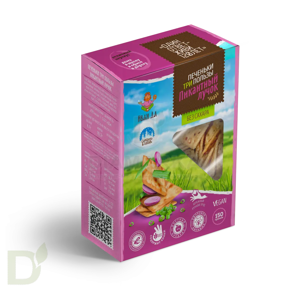 Это вкусное и полезное печенье создано для тех, кто заботится о своем здоровье и фигуре. Оно содержит ржаную муку, кунжут, а также лук, который богат витаминами и минералами. Печенье не содержит искусственных красителей и добавок, поэтому оно безопасно для здоровья.